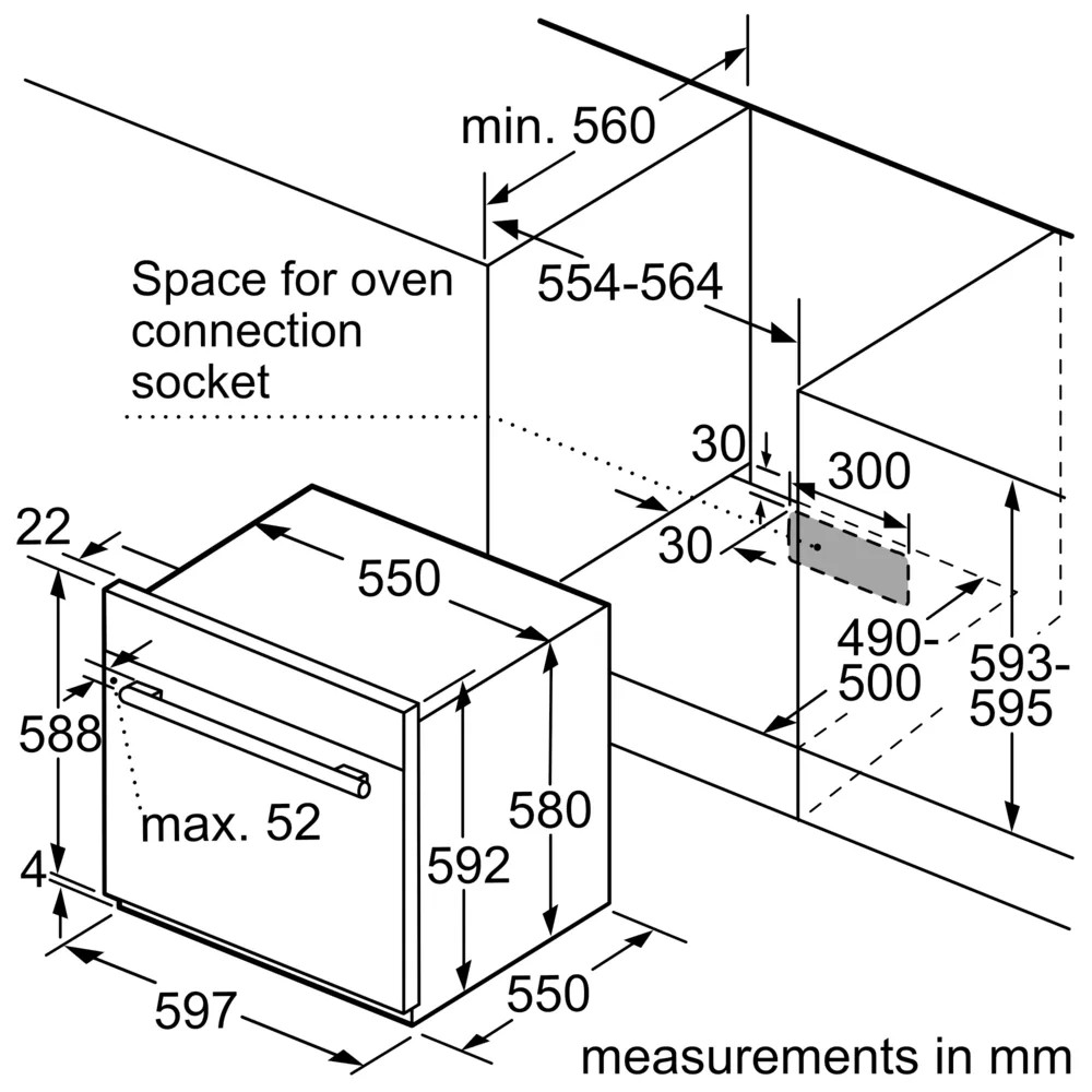 Built-in niche: 583–585 x 554–564 x 560 mm