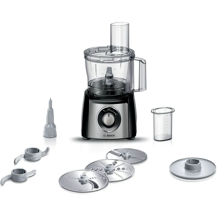 The Bosch MCM3421M MultiTalent 3 is a compact 800W food processor designed to handle essential kitchen prep tasks with speed and convenience.